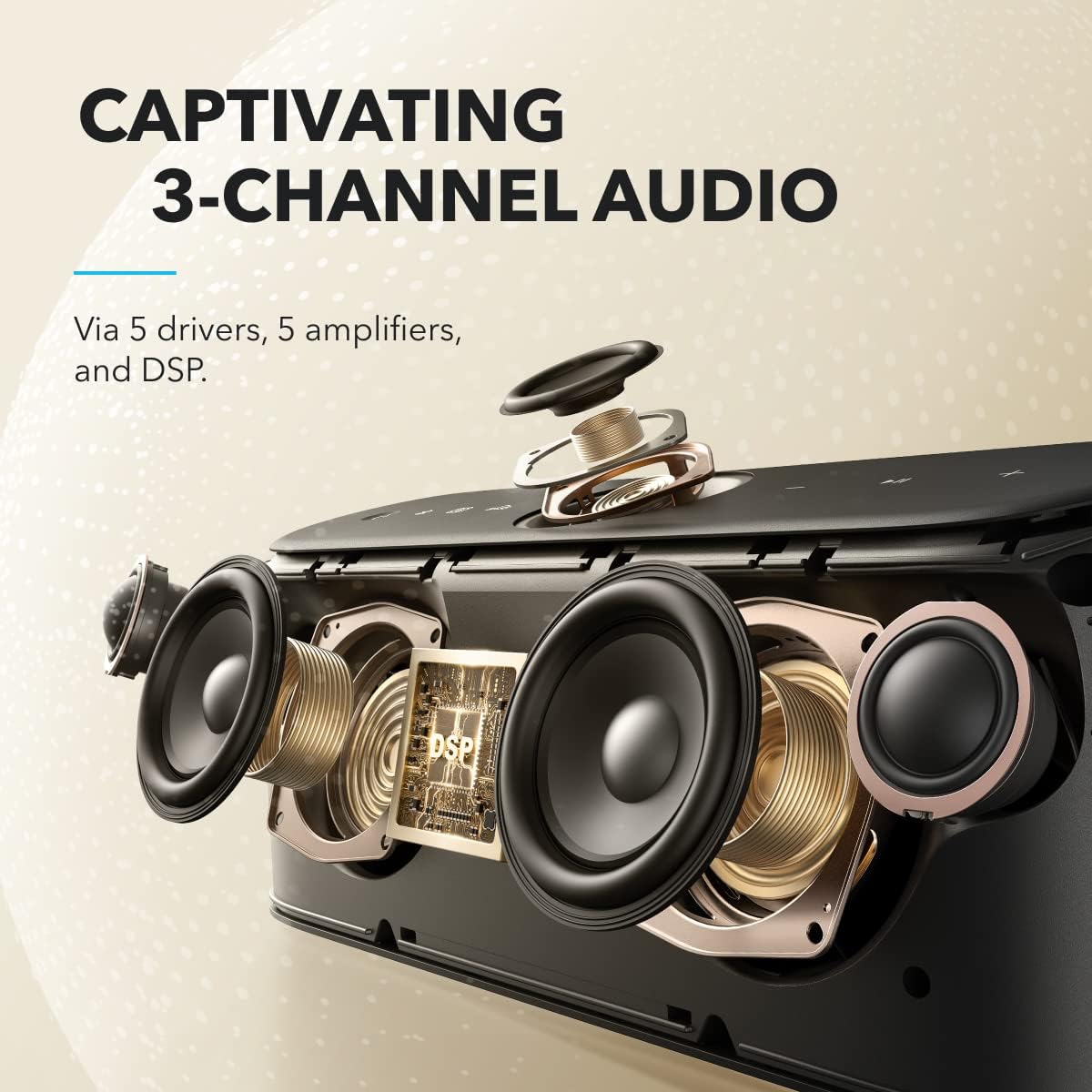 بله، این مدل نخستین اسپیکر قابل حمل انکر است که با پنج درایور مجزا، صدایی سهبعدی و همهجانبه ایجاد میکند.