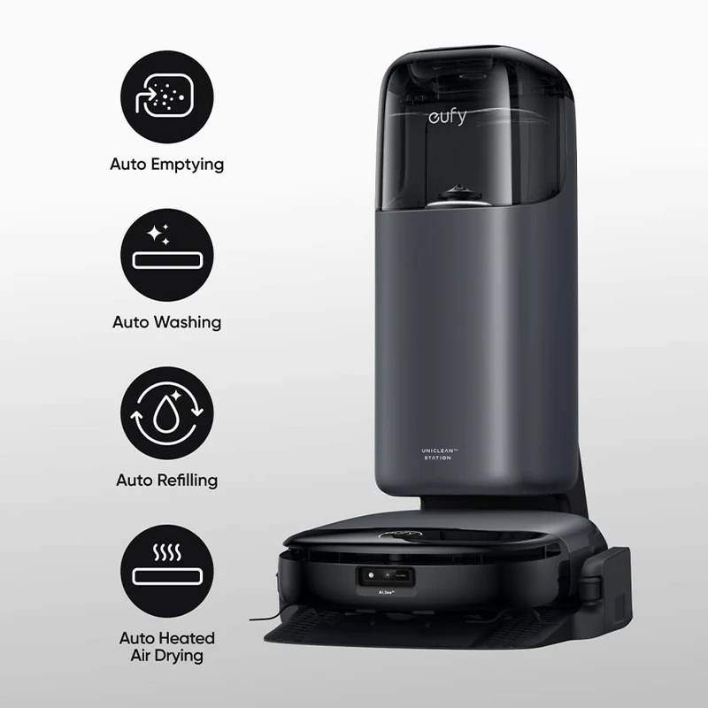 برای تمیز کردن بدون دردسر این ایستگاه قدرتمند دارای ویژگیهای خودکار از جمله تخلیه خودکار، شستشوی خودکار، پر کردن مجدد خودکار، خشککن با هوای گرم شده خودکار، جمعآوری خودکار فاضلاب، توزیع خودکار مواد شوینده، کنترل لمسی، کیسه گرد و غبار مهر و موم شده، و شارژ سریعتر 20 درصد.* سهولت و کارایی بی نظیری را تضمین می کند و تجربه تمیز کردن بدون نگرانی را ارائه می دهد.جاروبرقی هوشمند انکر Anker Eufy Robot Vacuum Omni S1 مدل T2071