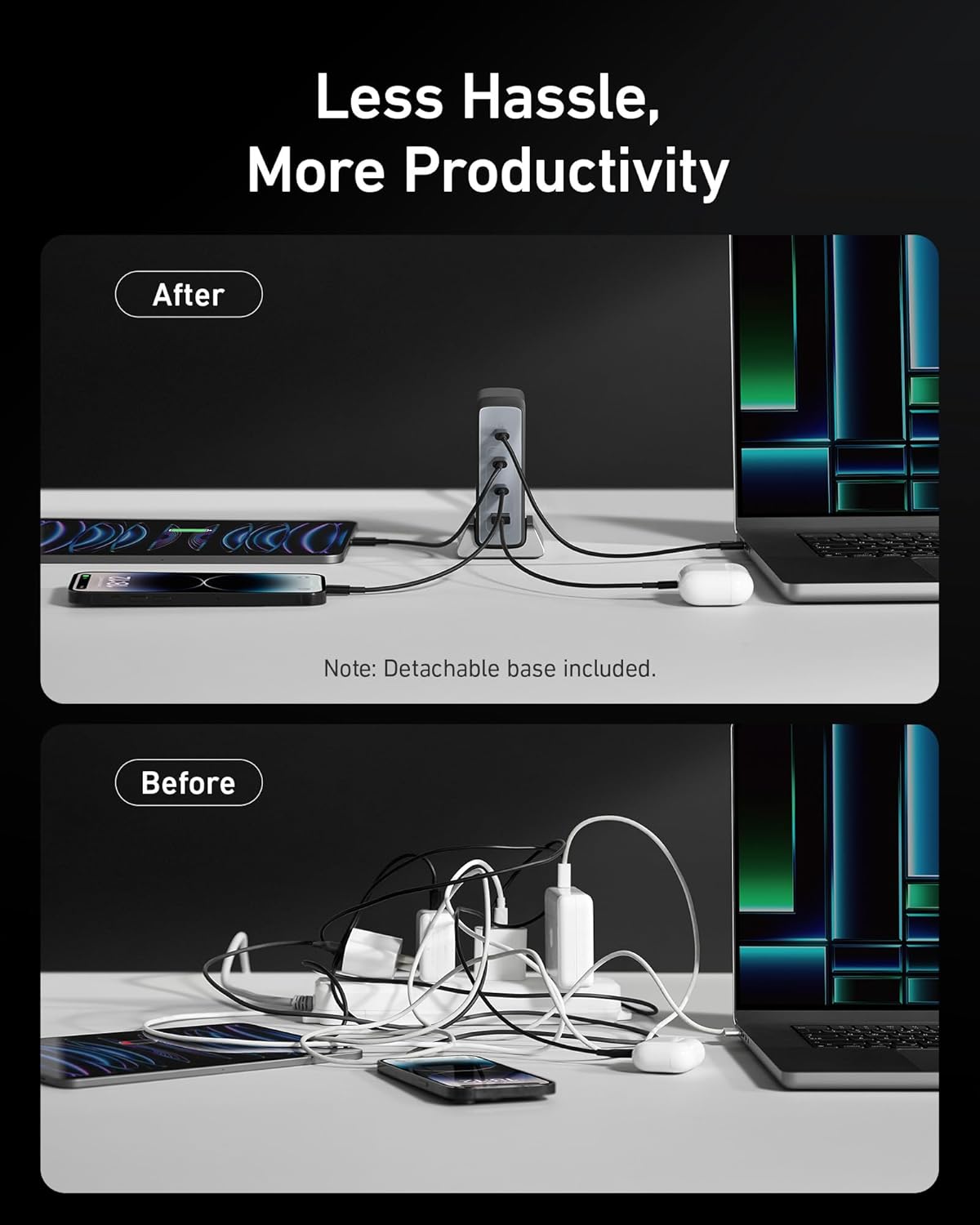 وجود چهار درگاه USB-C بهجای USB-A باعث شده شارژر کاملاً مدرن و آیندهنگرانه باشد.