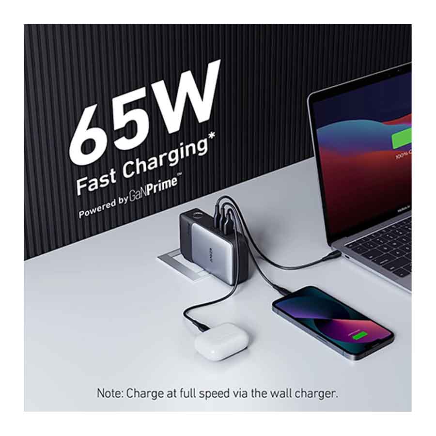 شارژر و پاوربانک Anker 733 Power Bank (GaNPrime PowerCore 65W) مدل A1651 ترکیبی هوشمند از یک شارژر دیواری قدرتمند و یک پاوربانک پرظرفیت است. این محصول با ظرفیت ۱۰٬۰۰۰ میلی‌آمپر ساعت و توان خروجی ۶۵ وات، یکی از پیشرفته‌ترین شارژرهای چندمنظوره‌ی بازار محسوب می‌شود. فناوری نوآورانه GaNPrime در این دستگاه، عملکردی سریع‌تر، ایمن‌تر و بهینه‌تر را ارائه می‌دهد. با وجود طراحی فشرده، این مدل می‌تواند لپ‌تاپ، گوشی هوشمند و تبلت شما را هم‌زمان شارژ کند.