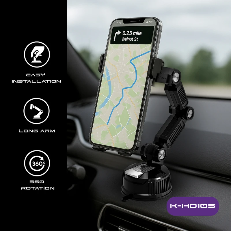 هولدر موبایل گیره ای مکشی کلومن مدل KOLUMAN K-HD105 یک انتخاب حرفه ای و در عین حال اقتصادی برای کسانی است که می خواهند گوشی خود را همیشه در دسترس و ایمن نگه دارند. این هولدر با طراحی هوشمند و کیفیت ساخت بالا، تجربه ای بی نظیر از نگهداری و استفاده از موبایل در محیط های مختلف ارائه می دهد، از خودرو و میز کار گرفته تا سطوح صاف خانگی یا اداری.